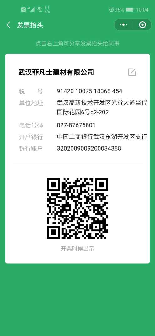 開(kāi)戶名:武漢菲凡士建材有限公司